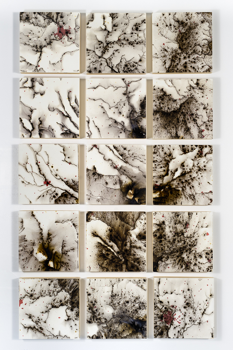 Confluence (detail). Gunpowder and watercolor on paper (101" x 62"). Photograph by Lauren Bina.